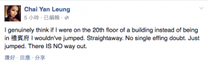 這可以解碼。大家可以留意她將這句說話置頂,目的是吸引別人注意,而且她也是在極度憤怒的情況下寫出了這些東西。