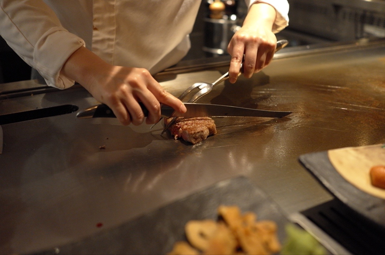餐廳有請美女廚師為你做鐵板燒,光是看她們表演已值回票價。